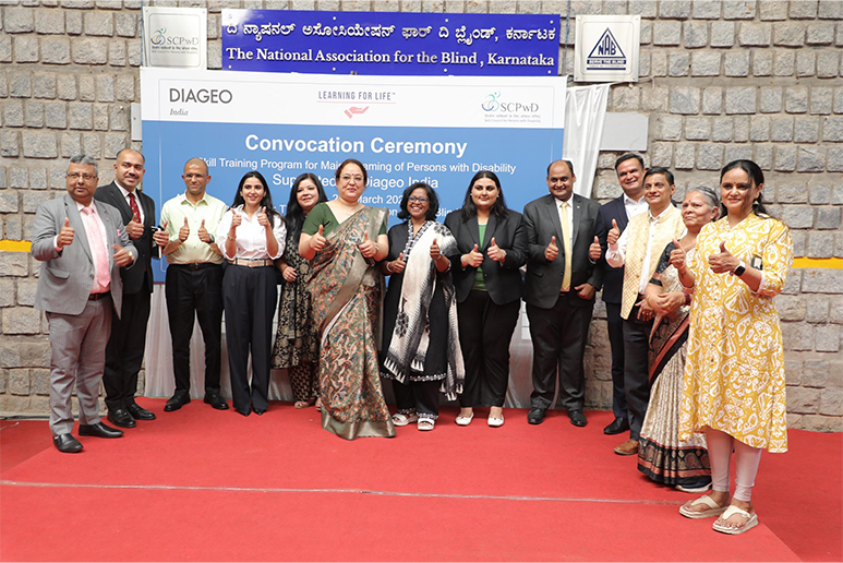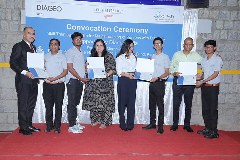 Bengaluru, March 2, 2026: Diageo India (United Spirits Ltd.) among the country’s leading alco-bev companies has partnered with the Skill Council for Persons with Disability (SCPwD) to train and place over 300 students in Food & Beverage Services under its ‘Learning for Life' program in FY 2026. The convocation ceremony for 100 students trained in the Bengaluru centre was held in the presence of Mr. Pradeep Jain, Chief Financial Officer, Diageo India, Mr. Ravindra Singh, CEO, Skill Council for Persons with Disability and senior leaders from Hotel JW Marriot, Hotel Grand Sheraton, Hotel Royal Orchid, Café Coffee Day, and Hatti Kappi.